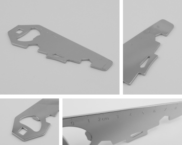 PAINT TIN OPENER NO. 7299-E back back forward forward Measure / Material:	approx. 11,7 cm, stainless steel Functions:			paint tin opener, 3 different openers for paint cans, square,  10 mm & 13 mm spanner, ruler with cm or inch, bottle opener  MADE IN SOLINGEN/GERMANY Contact Legal Notice Privacy Policy DUISBERG production